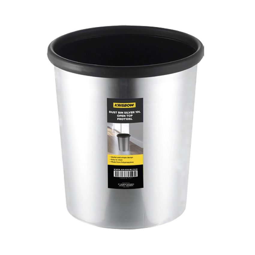 Spesifikasi detail Krisbow Tempat Sampah Open Top 10 Ltr Silver :